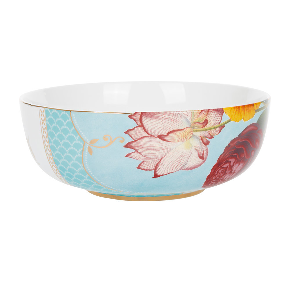 قومي بإعداد طاولة جميلة مع وعاء رويال بيب المليء بالسحر الأنثوي ، والذي يتميز بنمط مذهل من الزهور الزاهية على خلفية زرقاء فاتحة، منتهية بلمسات ذهبية أنيقة .