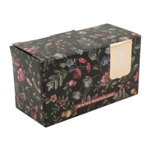 مجموعة من 2 أكواب صغيرة من تشكيلة ونتر وندرلاند في علبة أنيقة، مزينة بتصميم زهري شتوي مليء بالتوت والجوز والزهور الموسمية واللمسات الذهبية.