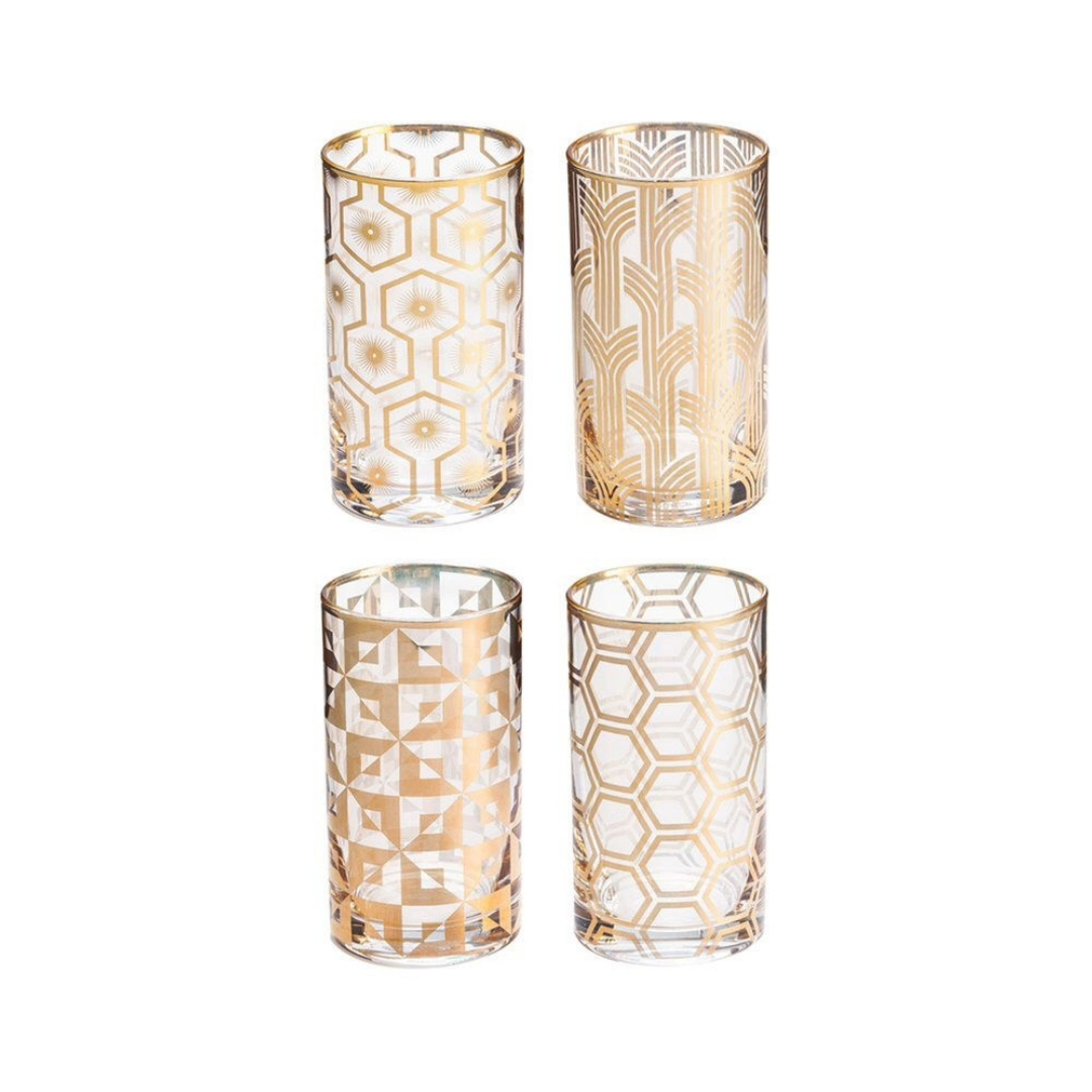 مجموعة من 4 أكواب زجاجية طويلة من تشكيلة جاز أيج مزينة بلمسات ذهبية.