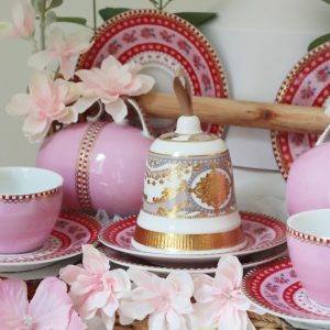 – 6 Pip studio espresso cups and saucers – 1 Norman Copenhagen Flask. – Baci Milano Bell Ornament.