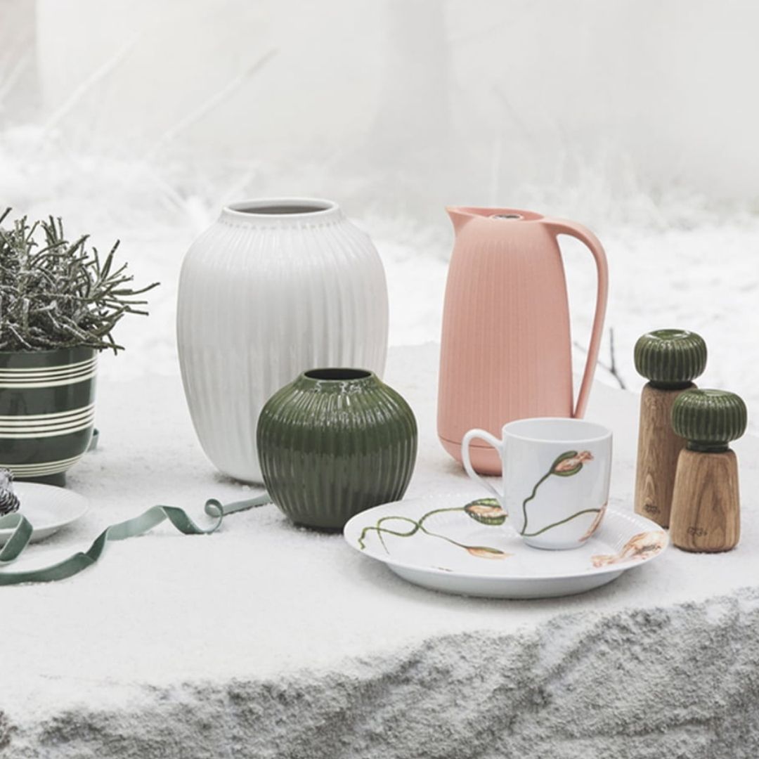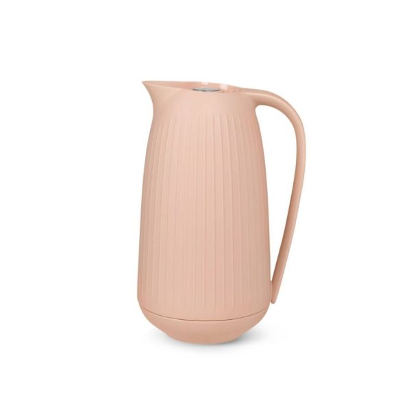 The thermal jug (dallah) features a glass insert to keep drinks hot, while the screw-on top ensures a tight seal. The product has a fine, matt silk finish which highlights the iconic Hammershøi grooves. The lid has a push-button function in stainless steel, so you can easily pour the coffee or tea without spills.