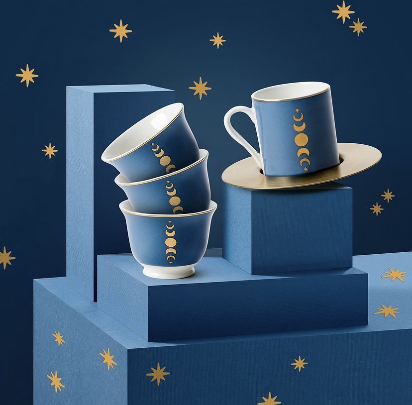 Hilal, meaning Moon in Arabic, pays tribute to the beauty of lunar phases. The Hilal Collection includes Chaffe, Espresso, and Istikana (Tea) cups, along with dessert plates and canisters.